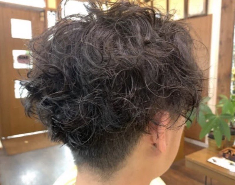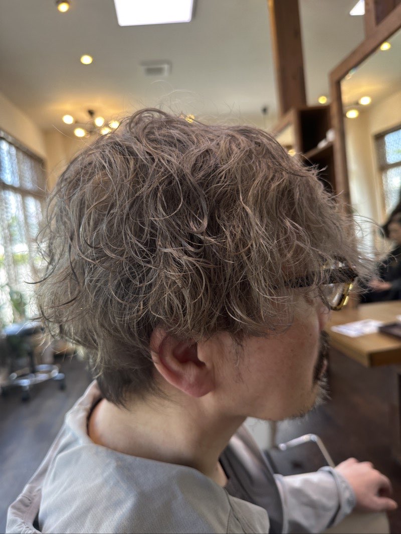 ミディアムショートのコールドパーマで魅せる、自然な動きが映えるメンズヘアスタイル