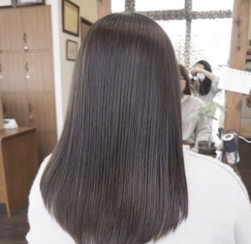ナチュラルなアッシュブラウンのヘアカラーで落ち着きを添える大人ストレートヘア 赤みを抑えたアッシュブラウンで大人らしい落ち着きを添えるストレートヘアを自然に楽しめます。ナチュラルな透明感を求める方にも取り入れやすいカラーです。 ほんのり寒... -