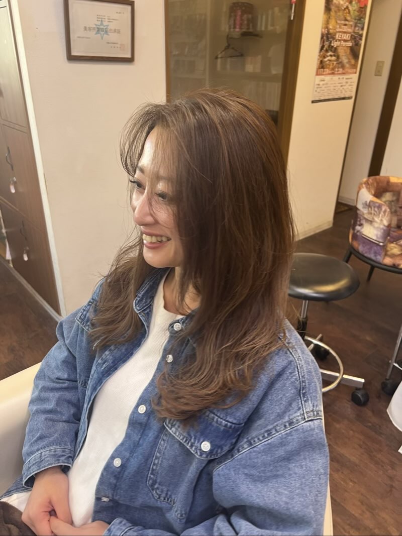 ミルクティーベージュのミディアムレイヤーは、やわらかな透明感と女性らしさを両立できる人気のスタイルです。外ハネの軽やかな動きが顔まわりを明るく見せ、ナチュラルな抜け感を演出します。春夏に向けて軽やかな印象を出したい方にぴったりです。 カッ... -