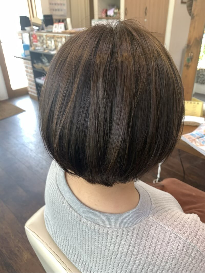「大人女性に似合う前下がりショートボブ」は、顔まわりをすっきり見せつつ上品さを引き出すカットです。サイドを長めに残すことで自然な陰影が生まれ、横顔に立体感をプラスします。首元が細く見える効果もあり、全体がバランスよくまとまります。 前髪か... -